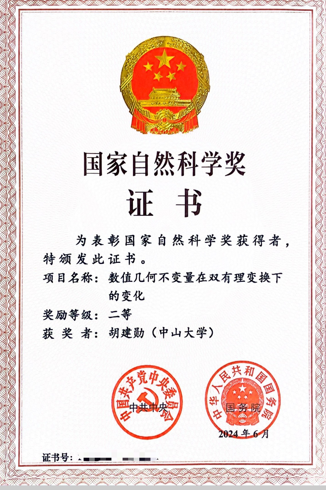 6月24日,中共中央、国务院在北京隆重举行2023年度国家科学技术奖励大会。中共中央总书记、国家主席、中央军委主席习近平为国家最高科学技术奖获得者等颁奖并发表重要讲话。公司胡建勋教授等完成的“数值几何不变量在双有理变换下的变化”项目获得自然科学奖二等奖。